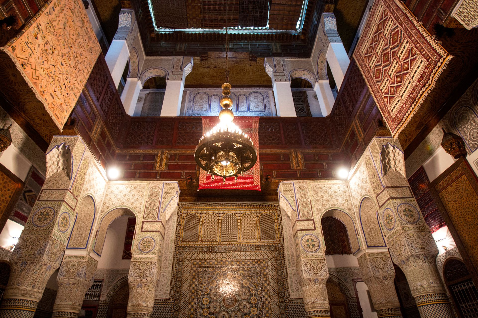 Spend the day discovering Fes with a knowledgeable local guide, a cultural highlight of your 13 day Morocco itinerary. Walk through the medieval medina, passing historic madrasas, mosques, fountains, and bustling souks. From panoramic viewpoints, admire the vast maze of the old city before enjoying free time in the afternoon. Overnight in Fes.