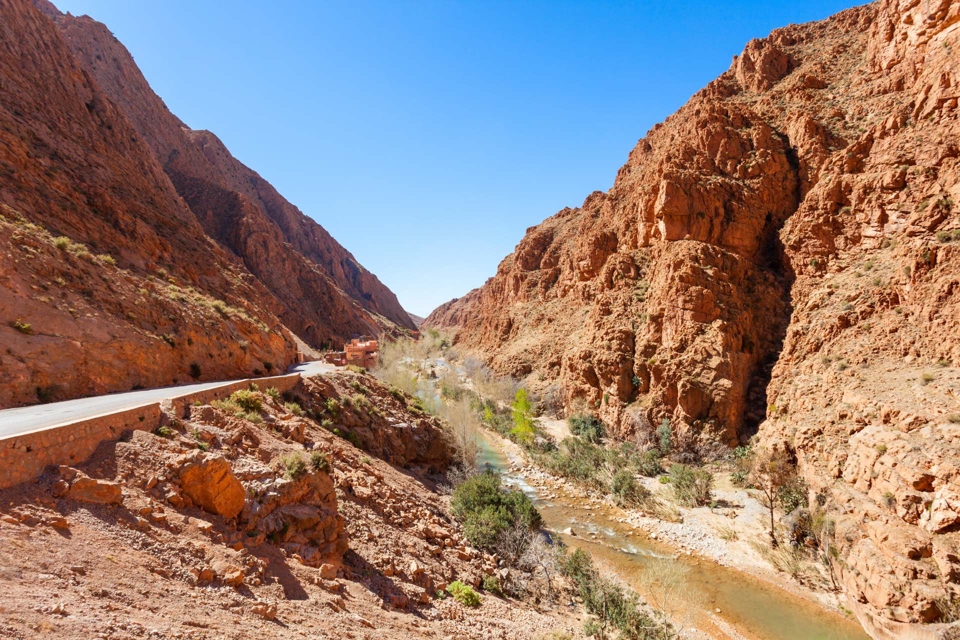A walk through the oasis provides insight into traditional irrigation systems and daily Berber life. Nearby, you’ll visit the breathtaking Todgha Gorge, where massive limestone cliffs rise hundreds of meters above a narrow riverbed. You’ll have time to walk through the canyon, take photos, and enjoy the refreshing atmosphere created by the towering rock walls.